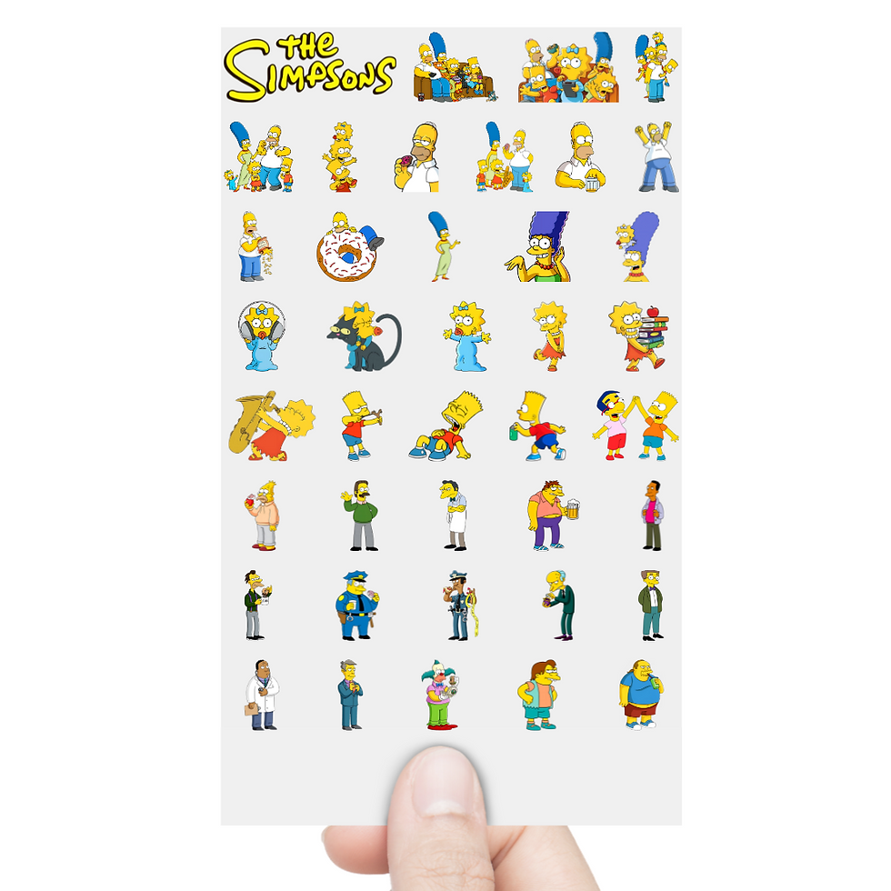 Cartela 40 Adesivos Simpsons Homer Marge DTF UV Prova D'água
